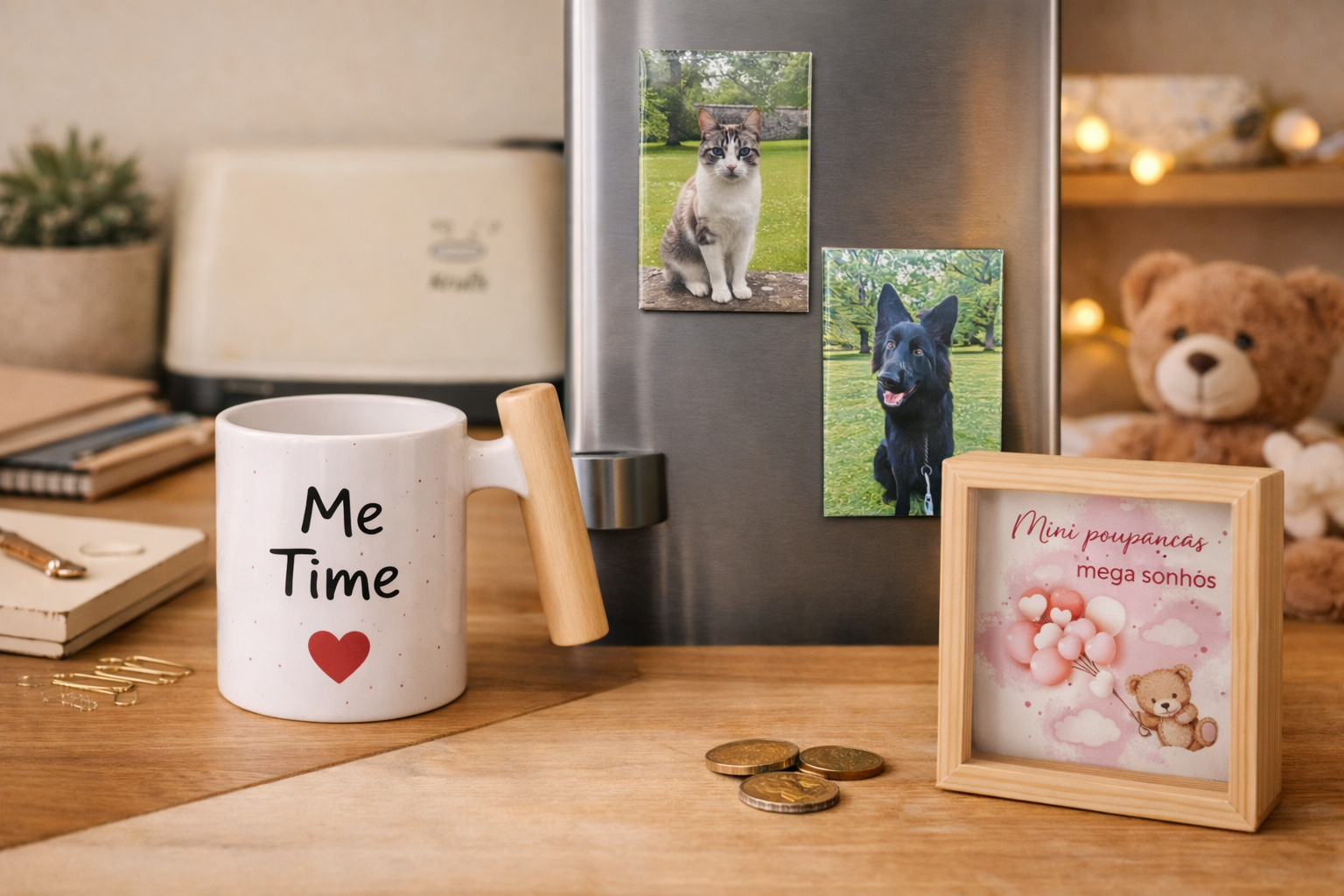 Desde canecas que arrancam sorrisos até t-shirts que contam histórias, criamos peças únicas, personalizadas com o seu toque, para que possa oferecer (ou usar) algo verdadeiramente especial.